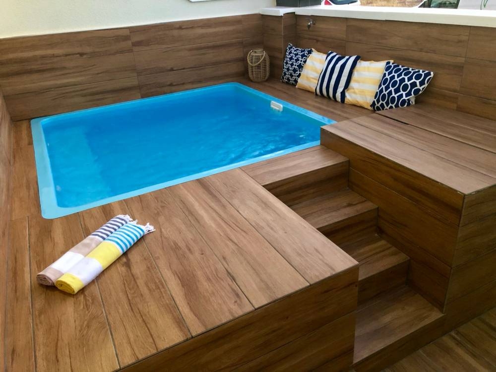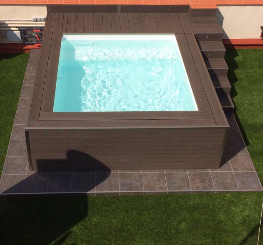 Es una piscina muy original, apta para el baño de hasta 4 personas. Puede instalarse en espacios muy limitados como terrazas, áticos y pequeños jardines.