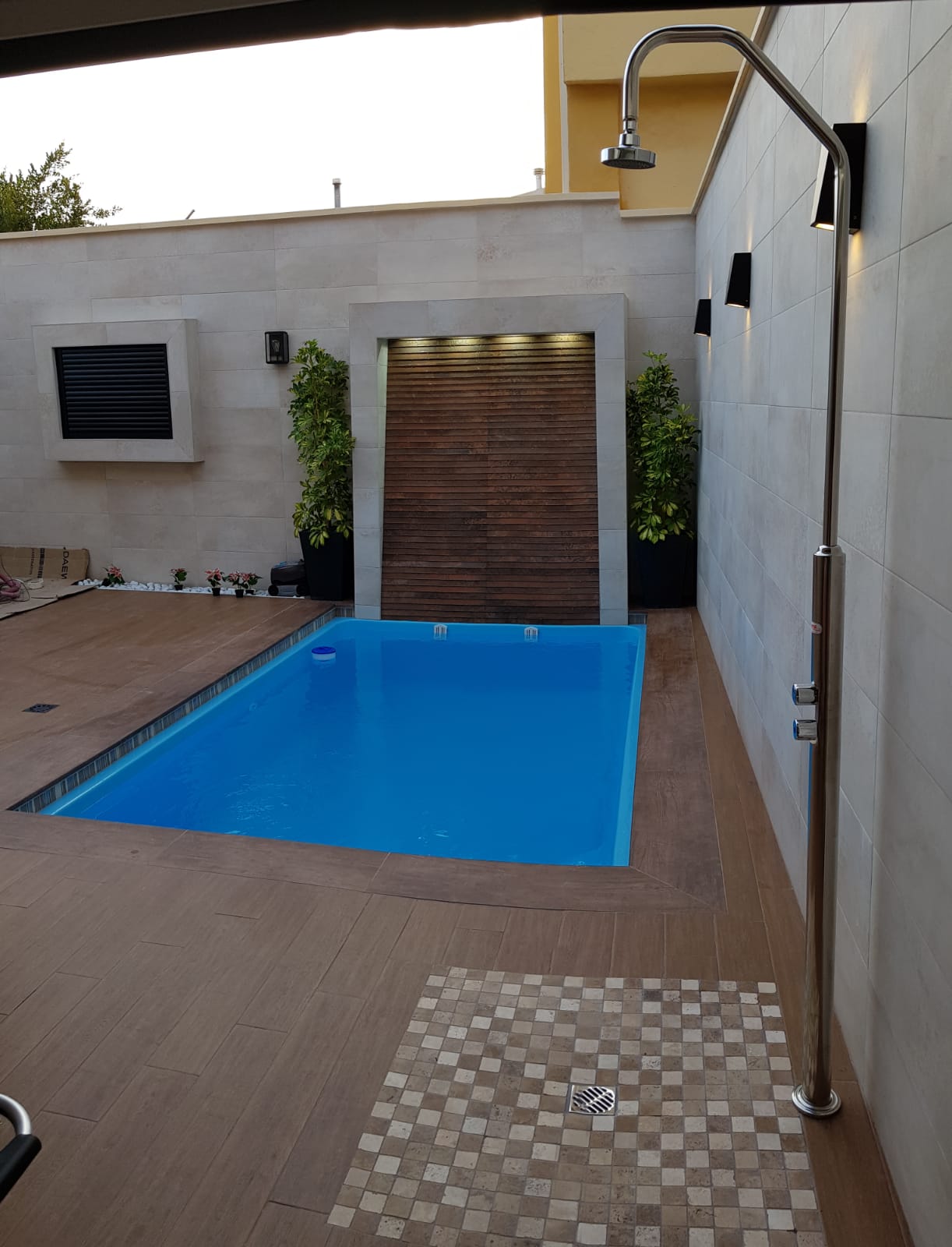 El modelo Eli dispone de unas escaleras en un ángulo de la misma piscina, lo que permite un mayor aprovechamiento del vaso. Puede instalarse en espacios muy limitados como terrazas, áticos y pequeños jardines. Está construida con materiales altamente resistentes a la intemperie. La excelencia en nuestra calidad se basa en materiales de poliéster reforzado con fibra de vidrio. Los refuerzos perimetrales se fabrican con el mismo material, eliminando las partes metálicas que causan oxidaciones, garantizando su uniformidad y estanqueidad.