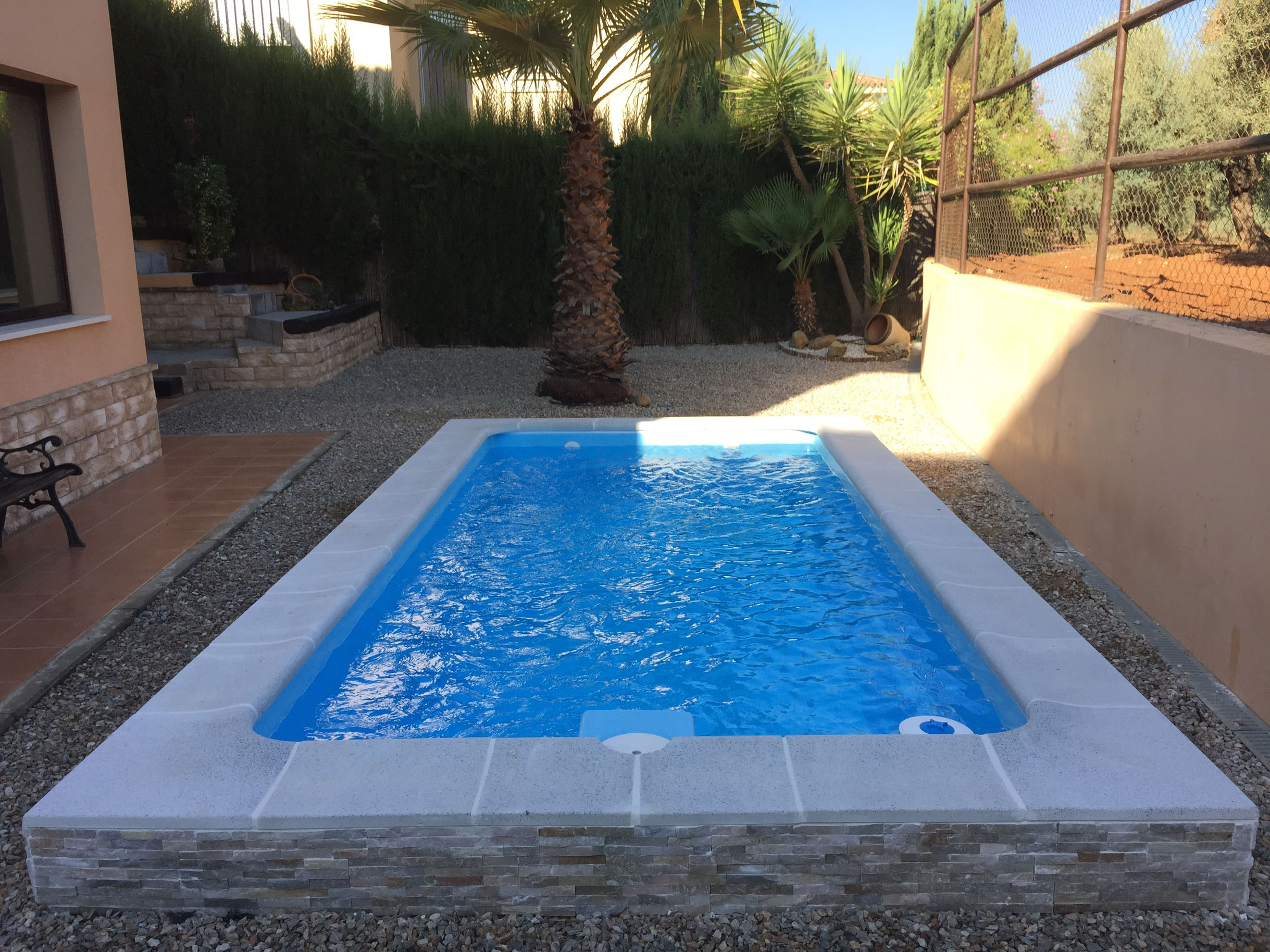 La majestuosa piscina Luna, es una piscina singular y muy práctica, llevándola a ser uno de los modelos que más se demandan. Esta piscina es ideal para instalar elevada o enterrada en terrazas, áticos, patios y jardines de pequeñas dimensiones. Está construida con materiales altamente resistentes a la intemperie. La excelencia en nuestra calidad se basa en materiales de poliéster reforzado con fibra de vidrio. Los refuerzos perimetrales se fabrican con el mismo material, eliminando las partes metálicas que causan oxidaciones, garantizando su uniformidad y estanqueidad.