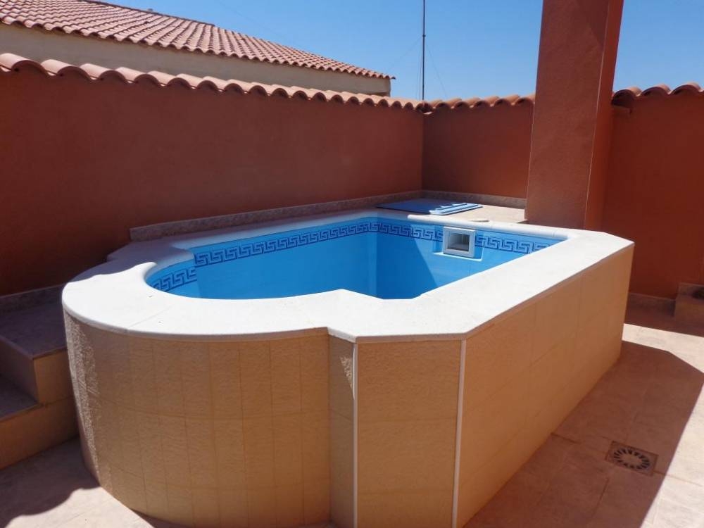Este modelo es ideal para la colocación en superficie de terrazas, áticos, patios y jardines de pequeñas medidas. Tiene una forma muy particular que la diferencia del resto de piscinas. Está construida con materiales altamente resistentes a la intemperie.