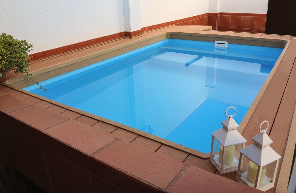 La piscina prefabricada Sol, es el modelo más solicitado del catálogo gracias a sus reducidas dimensiones, y su portabilidad a cualquier lugar, incluyendo el skimmer empotrado dentro de la piscina.